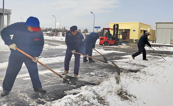 在做好本車間單位“門前三包”掃雪除冰工作的同時(shí),公司員工沒有“自掃門前雪”,積極發(fā)揚(yáng)志愿服務(wù)精神,切實(shí)履行社會(huì)職責(zé),還清除了周邊廠區(qū)外非機(jī)動(dòng)車道上的積雪積冰。