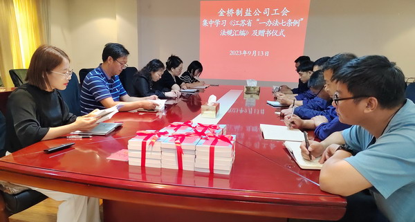 為落實市總及集團工會相關要求, 9月13日,我公司工會舉辦集中學習《江蘇省“一辦法七條例”法規匯編》活動及贈書儀式。公司工會負責人,各分會、人資部門、安全部門負責人,部分職工代表參加。