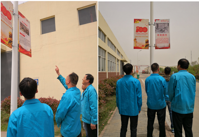 利用廠區路燈桿設計制作黨史學習畫報