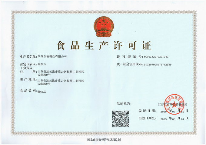5月15日,我公司順利獲得《食品生產許可證》,成為江蘇省第一家獲得《食品生產許可證》的國家食鹽定點生產企業(yè)。