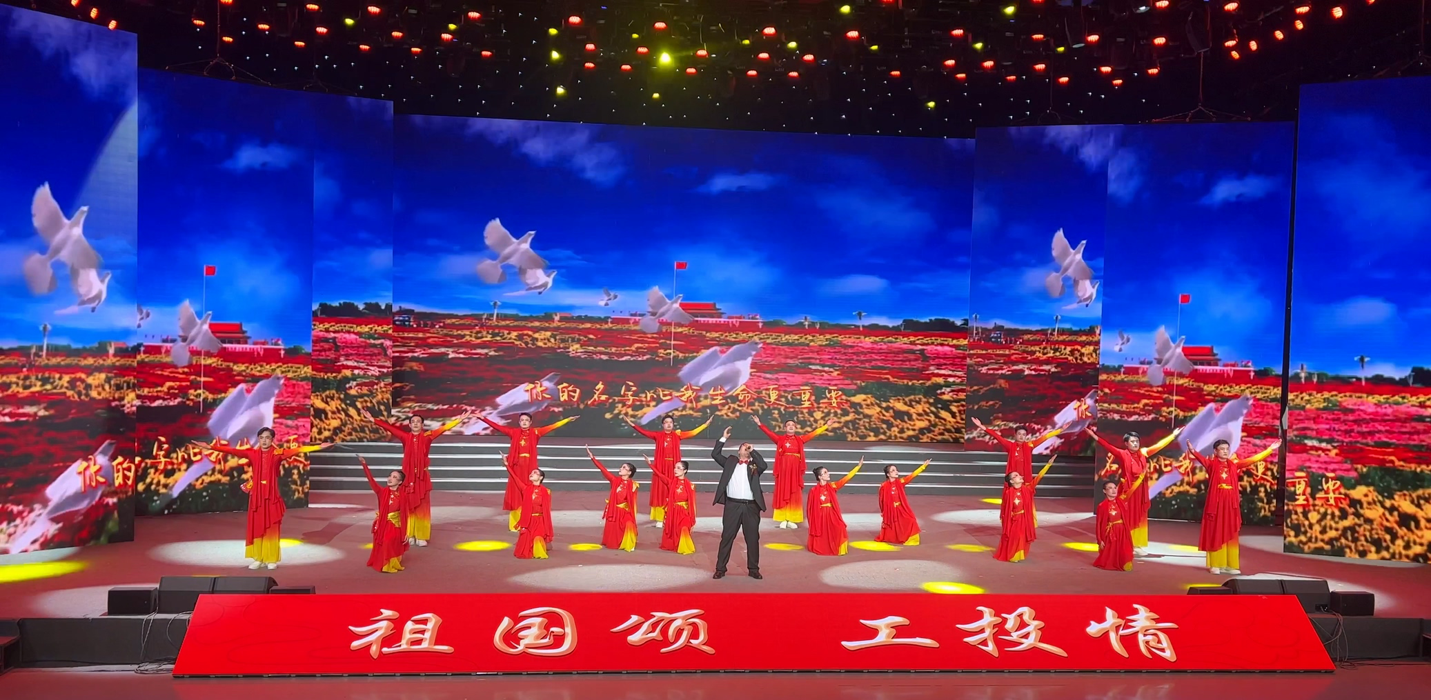 在演出舞臺上,一曲《紅旗飄飄》以夢幻般的旋律和激昂的歌詞展現了對祖國母親的熱愛之情。演出人員以高亢嘹亮的歌聲和美輪美奐的舞蹈,把對祖國母親的深情厚意演繹得淋漓盡致,讓現場的觀眾熱血沸騰、心潮澎湃?!都t旗飄飄》不僅歌頌了祖國的偉大,也抒發了廣大職工愛國愛企愛崗的深深情懷。(金鹽宣)